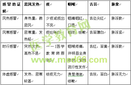 3.「问题」感冒辨证知识点的题目演练。