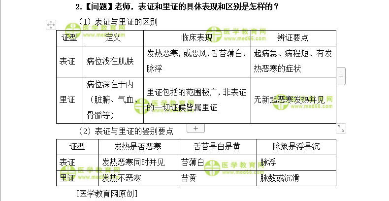 2.【问题】老师,表证和里证的具体表现和区别是怎样的?