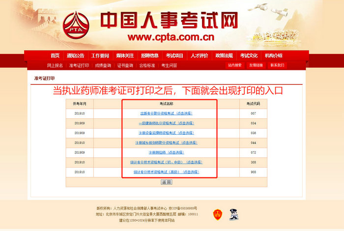 执业药师准考证打印入口:中国人事考试网(http://www.cpta.com.cn/)