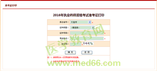 2016年大连市执业药师准考证打印入口: