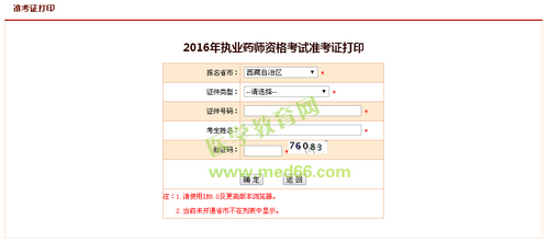 西藏2016年执业药师考试准考证打印入口已经公布,为帮助广大考生及时打印准考证,医学教育网及时更新了相关信息,请点击下面链接或者图片进入2016年执业药师考试准考证打印入口,填写个人姓名及证件号码打印2016年考试准考证。