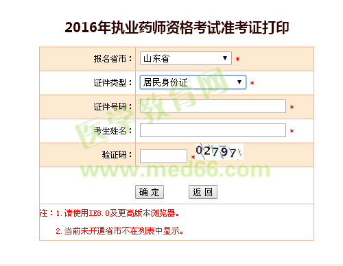 山东省2016年执业药师考试准考证打印入口已经公布,为帮助广大考生及时打印准考证,医学教育网及时更新了相关信息,请点击下面链接或者图片进入2016年执业药师考试准考证打印入口,填写个人姓名及证件号码打印2016年考试准考证。