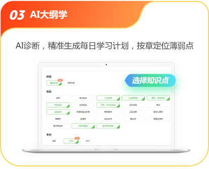 | AI大纲学 Al分析诊断历年考试重难点,精准生成每日学习计划,按章定位薄弱点! |