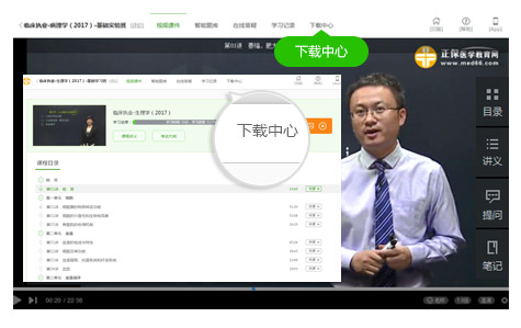 开通课程后即可下载课程。在听课界面,点击上方的“下载中心”按钮即可进入当前播放课程的下载中心。