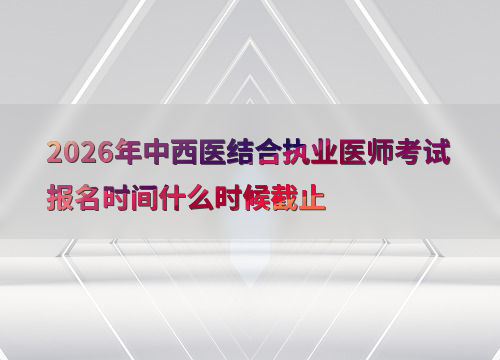 2026年中西医结合执业医师考试报名预计在1月至2月进行,具体截止日期需关注当地考点通知。