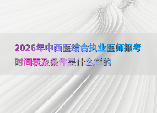 2026年中西医结合执业医师考试报名预计在1月至2月进行,参考往年时间(如2025年为2月8日至2月21日),建议考生提前关注国家医学考试网公告。