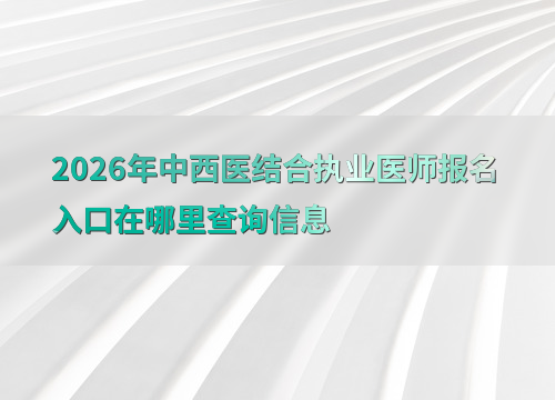 2026年中西医结合执业医师考试报名预计在1月至2月进行,考生可通过国家医学考试网(www.nmec.org.cn)完成网上报名。