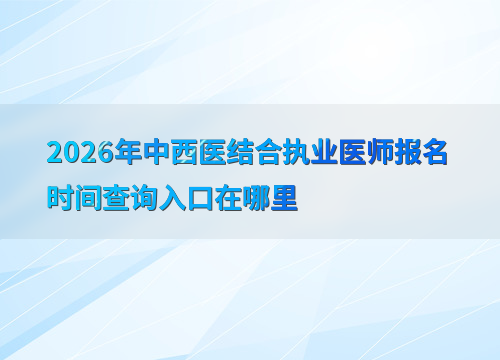 2026年中西医结合执业医师报名时间查询入口在哪里