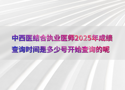 中西医结合执业医师2025年成绩查询时间是多少号开始查询的呢