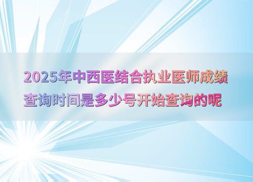 2025年中西医结合执业医师成绩查询时间是多少号开始查询的呢