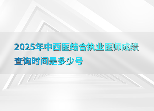 根据往年规律,2025年中西医结合执业医师综合考试成绩预计在9月公布,通常为考后约1个月。