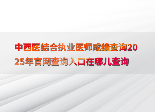 中西医结合执业医师成绩查询2025年官网入口在哪