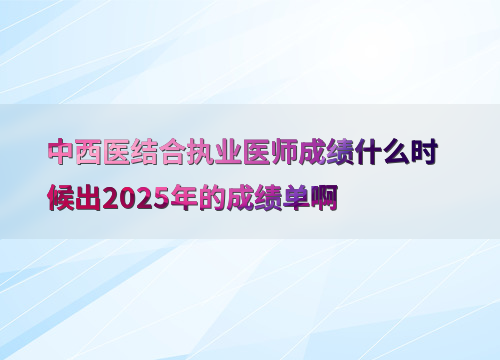 中西医结合执业医师成绩什么时候出2025年的成绩单啊