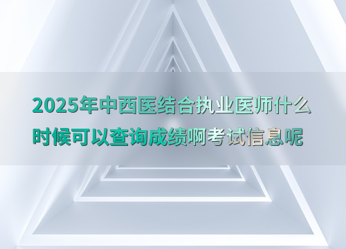 2025年中西医结合执业医师综合考试成绩预计在9月公布,参考近年数据,一般为考后1个月左右。