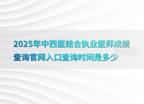 2025年中西医结合执业医师综合考试成绩于9月23日公布。