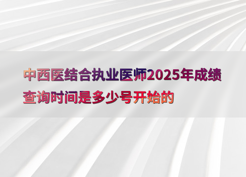 中西医结合执业医师2025年成绩查询时间是多少号开始的
