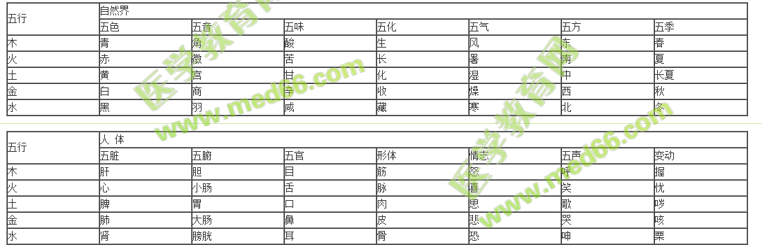 ②事物属性的五行归类表(此表的内容常以各种医学|教育网形式的模拟试题出现,应当熟记)