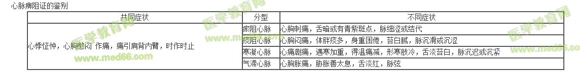 心脉痹阻证的临床表现及瘀阻心脉、痰阻心脉、寒凝心脉、气滞心脉四证医学|教育网的鉴别