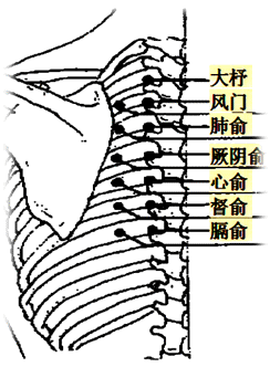 【定位】在脊柱区,第3胸椎棘突下,后正中线旁开1.5寸。