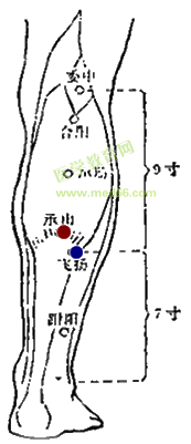 【定位】在小腿后区,腓肠肌两肌腹与肌腱交角处。