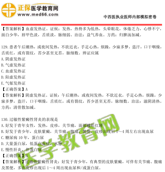 以上关于“考前估分|中西医执业医师2019年模考密卷第3单元(二十六)”的内容,由医学教育网编辑为您整理。希望可以帮助到大家,更多的文章随时关注医学教育网中西医执业医师辅导精华栏目!医考爱打卡是医学教育网推出的医考人免费刷题微信小程序,让备考有计划,让学习有效率,助力你的医师考试。 涵盖100个精选考点+400道题目及解析!立即免费刷题>>