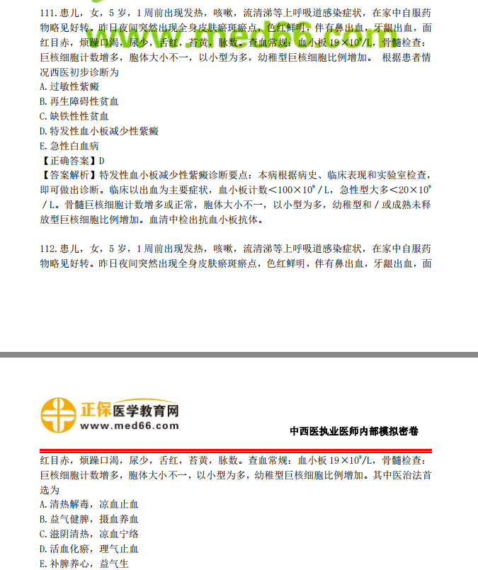 以上关于“考前估分|中西医执业医师2019年模考密卷第4单元(二十三)”的内容,由医学教育网编辑为您整理。希望可以帮助到大家,更多的文章随时关注医学教育网中西医执业医师辅导精华栏目!医考爱打卡是医学教育网推出的医考人免费刷题微信小程序,让备考有计划,让学习有效率,助力你的医师考试。 涵盖100个精选考点+400道题目及解析!立即免费刷题>>