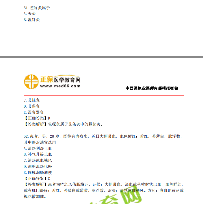 以上关于“考前估分|中西医执业医师2019年模考密卷第4单元(十三)”的内容,由医学教育网编辑为您整理。希望可以帮助到大家,更多的文章随时关注医学教育网中西医执业医师辅导精华栏目!医考爱打卡是医学教育网推出的医考人免费刷题微信小程序,让备考有计划,让学习有效率,助力你的医师考试。 涵盖100个精选考点+400道题目及解析!立即免费刷题>>