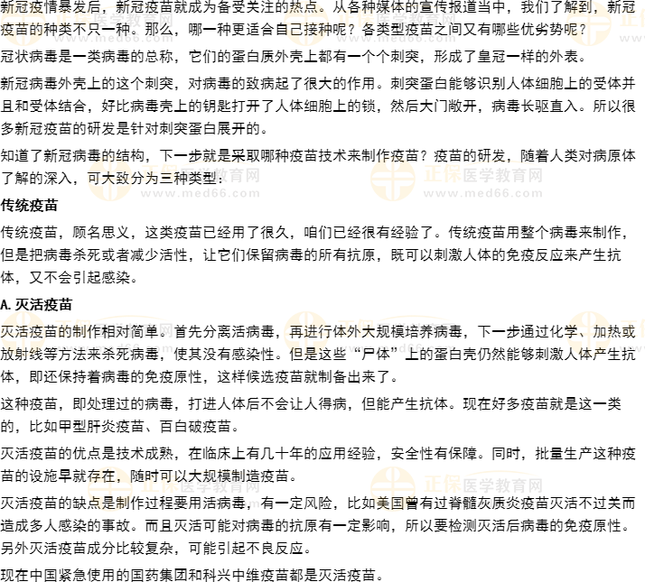以上关于“市面上新冠疫苗种类及各自区别、优缺点分别是什么?”的问题由医学教育网编辑整理搜集,更多的文章随时关注医学教育网医师资格辅导精华栏目!