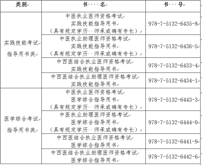 官方2021年中西医执业医师考试指定教材书号如下,国家中医药管理局中医师资格认证中心为贯彻落实《中华人民共和国执业医师法》,根据医师执业的实际需要,组织专家编写了中医、中西医结合医师资格考试系列指导用书,共8本,授权中国中医药出版社独家出版。