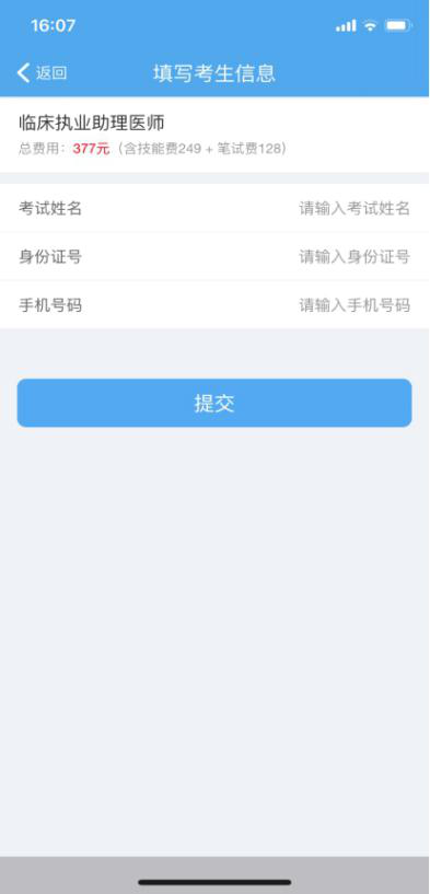 第二步:点击首页“医考缴费”,进入到考试科目选择界面。