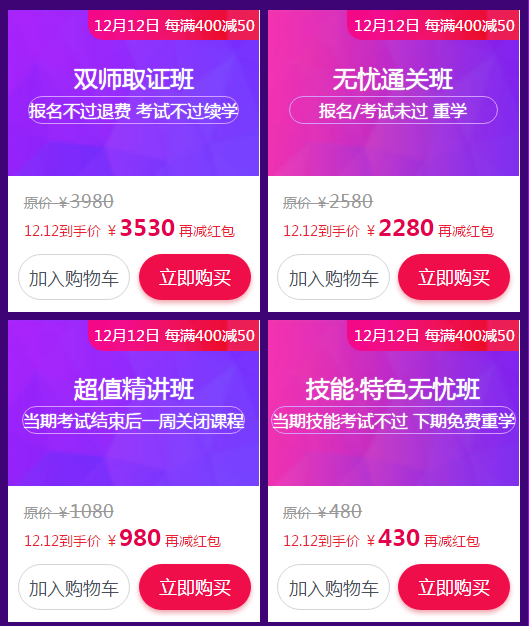 一、将12月8日-12月12日抽取的优惠券,可以叠加使用,在12月12日当天可以用于购买课程。(红包能和优惠活动同享、能叠加使用)