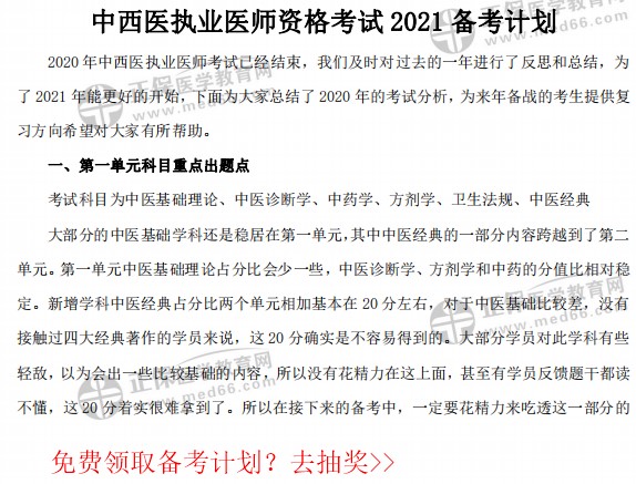 想获取全部完整的2021年中西医执业医师各单元复习重点及复习指导?快去免费抽奖>>