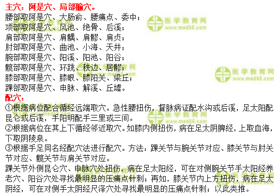 以上关于“中西医结合执业医师实践技能:扭伤的针灸治疗”的内容,由医学教育网编辑为您整理。希望可以帮助到大家,更多的文章随时关注医学教育网中西医执业医师栏目!