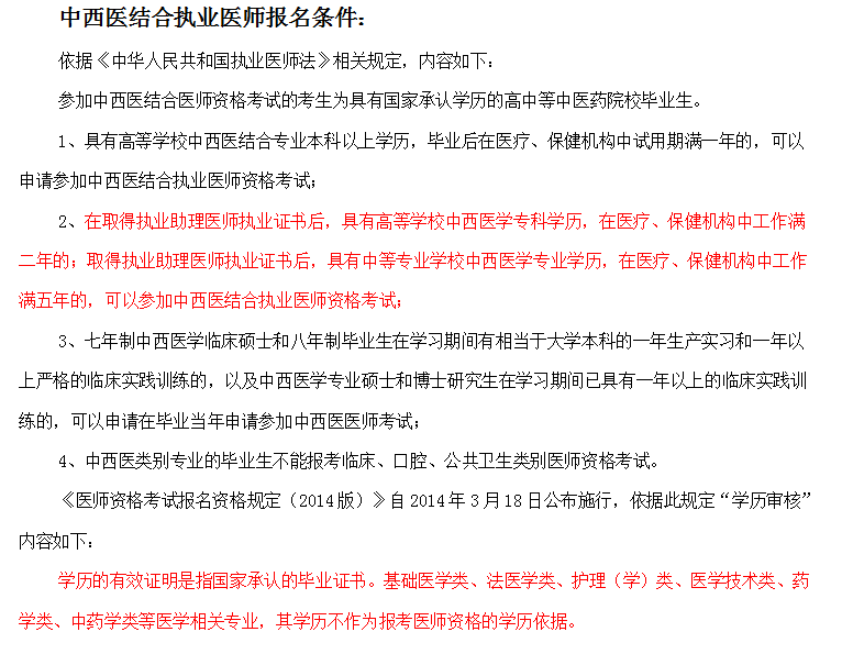 2.2008年12月31日以前入学的中西医结合专业(含教育部、原卫生部批准试办的初中起点5年制专科层次中西医临床医学专业)毕业生,其专科学历作为报考医师资格的学历依据。