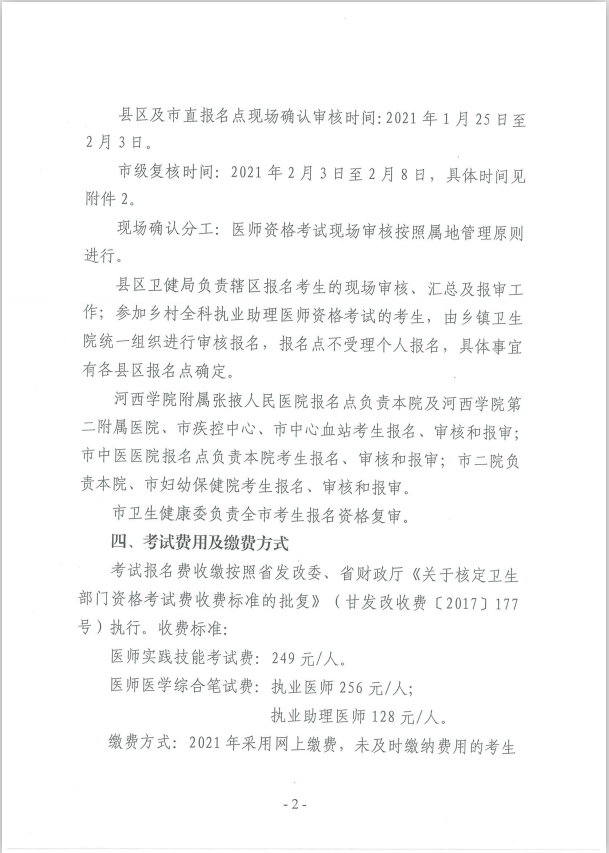 张掖市县区及市直报名点现场审核确认时间:2021年1月25日-2月3日