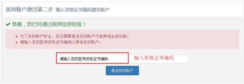 若未通过医师资格校验,则可能是注册时填写的姓名及身份证号码有误,请修改正确后继续验证;如果确认姓名及身份证号码无误,请在系统内“资格补【改】指南”菜单中查看解决办法。