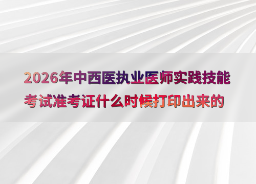 2026年中西医执业医师实践技能考试时间为6月6日至14日,准考证打印时间因地区而异,通常在考前1-2周开放打印。