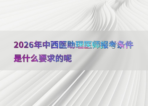 2026年中西医助理医师考试报名预计在1-2月进行,考生需具备国家承认学历的中西医结合专业学历。