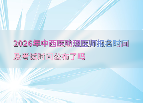 2026年中西医助理医师考试报名时间预计在1月至2月期间进行。