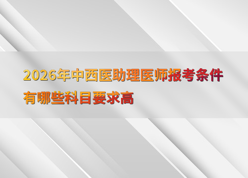 2026年中西医助理医师考试报名预计在1-2月进行,考生需具备国家承认学历的中西医结合专业专科学历或中等专业学校学历,并在医疗、保健机构试用期满一年。