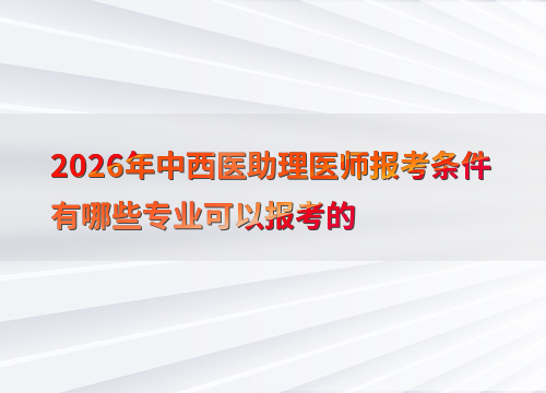 2026年中西医助理医师考试面向具有国家承认学历的高中等中医药院校毕业生,专科学历或中专学历的中西医结合专业毕业生,试用期满一年即可报考。