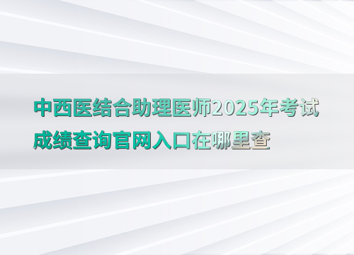 根据往年规律,中西医助理医师综合考试成绩通常在考后约1个月公布。
