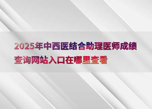 2025年中西医结合助理医师综合考试成绩预计在9月公布,考生可通过国家医学考试网(http://www.nmec.org.cn/)首页“成绩查询入口”进行查询。