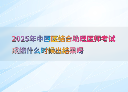 2025年中西医结合助理医师考试成绩预计在9月公布,参考近年规律,考后约1个月左右可查分。