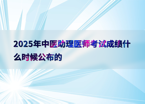 2025年中医助理医师综合考试成绩预计在9月公布,参考近年数据,考后约1个月左右可查分。
