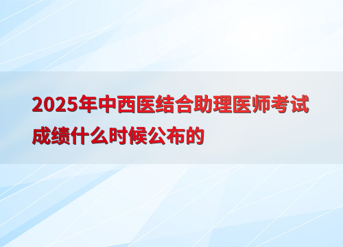 2025年中西医结合助理医师考试成绩预计在9月公布,参考近年规律,考后约1个月左右可查分。