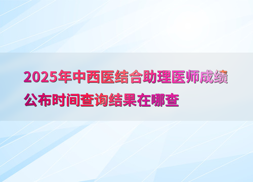 2025年中西医结合助理医师综合考试成绩预计在9月公布,参考近年时间规律(如2024年9月13日、2023年9月19日),考后约1个月可查。