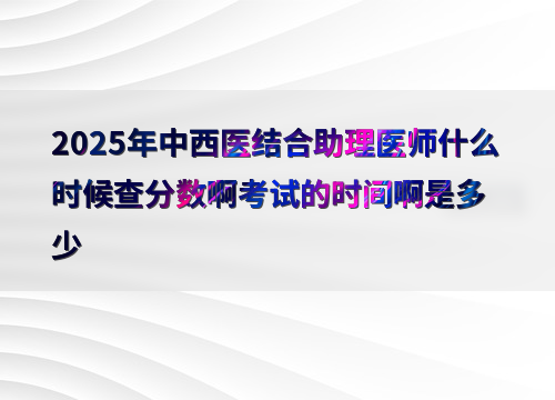 2025年中西医结合助理医师综合考试预计在9月公布成绩,参考近年规律,考后约1个月左右发布。