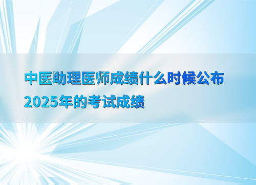 根据历年规律,2025年中医助理医师综合考试成绩预计在9月公布,通常为考后约1个月。