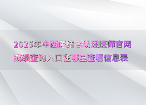 2025年中西医助理医师综合考试成绩预计在9月公布,参考近年数据(如2024年9月13日、2023年9月19日),考后约1个月左右可查。